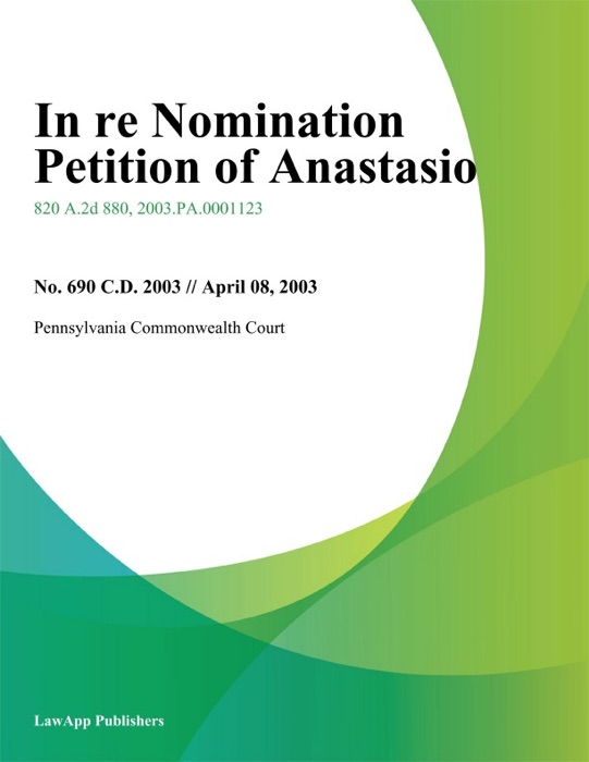 (DOWNLOAD) "In re Nomination Petition of Anastasio" by Pennsylvania Commonwealth Court " Book PDF Kindle ePub Free